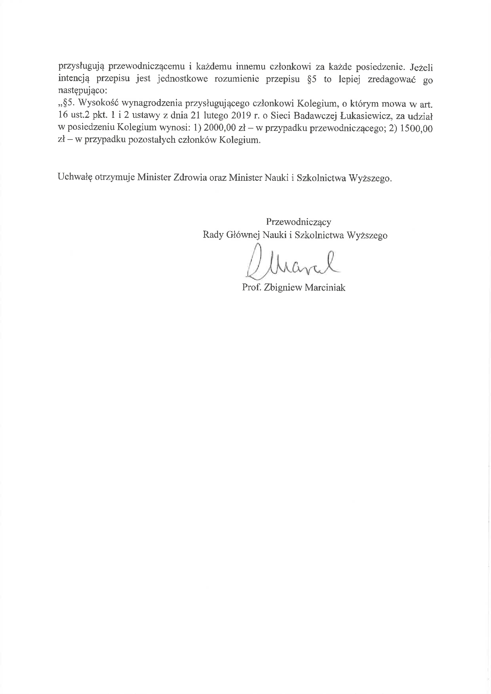 Uchwała nr 22/2019 Prezydium Rady Głównej Nauki i Szkolnictwa Wyższego z dnia 10 lipca 2019 r. w sprawie projektu rozporządzenia Ministra Nauki i Szkolnictwa Wyższego w sprawie wysokości wynagrodzenia przysługującego członkom rady instytutu działającego w ramach Sieci Badawczej Łukasiewicz »